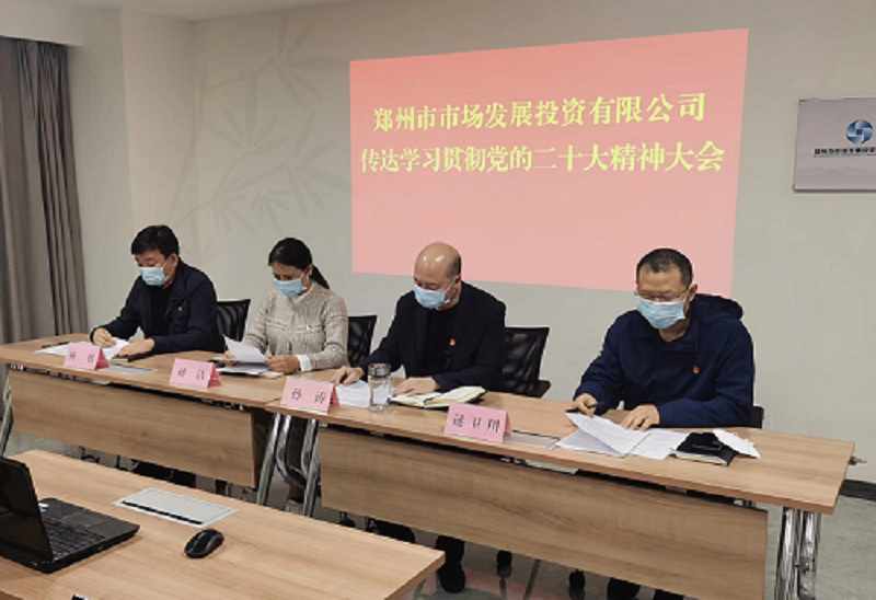 11月9日上午,鄭州市市場發(fā)展投資有限公司召開傳達學習黨的二十大精神大會。會議指出,認真學習宣傳貫徹黨的二十大精神是當前和今后一個時期的首要政治任務,要深刻領悟“兩個確立”的決定性意義,堅決做到“兩個維護”,更加緊密團結在以習近平同志為核心的黨中央周圍,以“五個牢牢把握”為重點,深刻領會和理解把握黨的二十大報告的豐富內涵和精髓要義,切實把思想和行動統(tǒng)一到黨的二十大精神上來,以更加昂揚的精神狀態(tài),努力創(chuàng)造新的更大業(yè)績,在鄭州國家中心城市現(xiàn)代化建設中展現(xiàn)國企更大擔當。會議以視頻形式召開,公司領導班子成員,各中心、子公司主要負責人及相關人員參加會議。