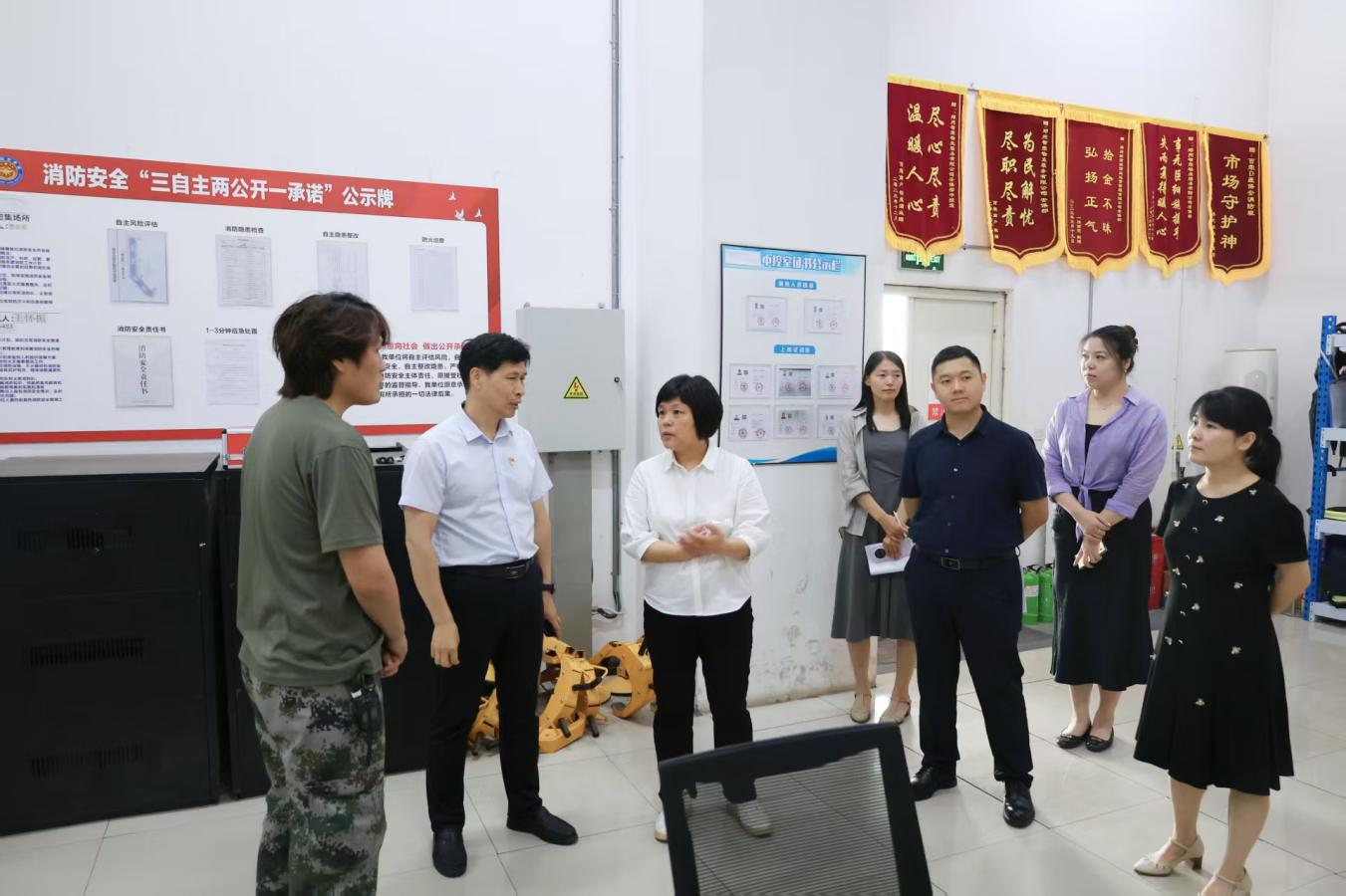 黨委書(shū)記、董事長(cháng)、總經(jīng)理張海燕一行赴百榮世貿商城D座,針對商城安全設施運行,風(fēng)險管控及措施落實(shí)等關(guān)鍵環(huán)節,重點(diǎn)核查安全主體責任落實(shí)、消防設備維護保養情況,實(shí)地查看消防中控室、消防通道等重點(diǎn)區域,并聽(tīng)取新商城運營(yíng)公司“安全生產(chǎn)月”活動(dòng)匯報。針對發(fā)現問(wèn)題,現場(chǎng)提出整改要求,強調強化跟蹤督辦,確保整改到位。督導組強調,公司上下要提高思想認識,將安全管理置于突出位置,堅決克服麻痹思想和僥幸心理,嚴格落實(shí)主體責任;同時(shí)要持續提升服務(wù)能力、拓展服務(wù)范圍、提高管理效率,為商城營(yíng)造更優(yōu)質(zhì)的營(yíng)商環(huán)境。